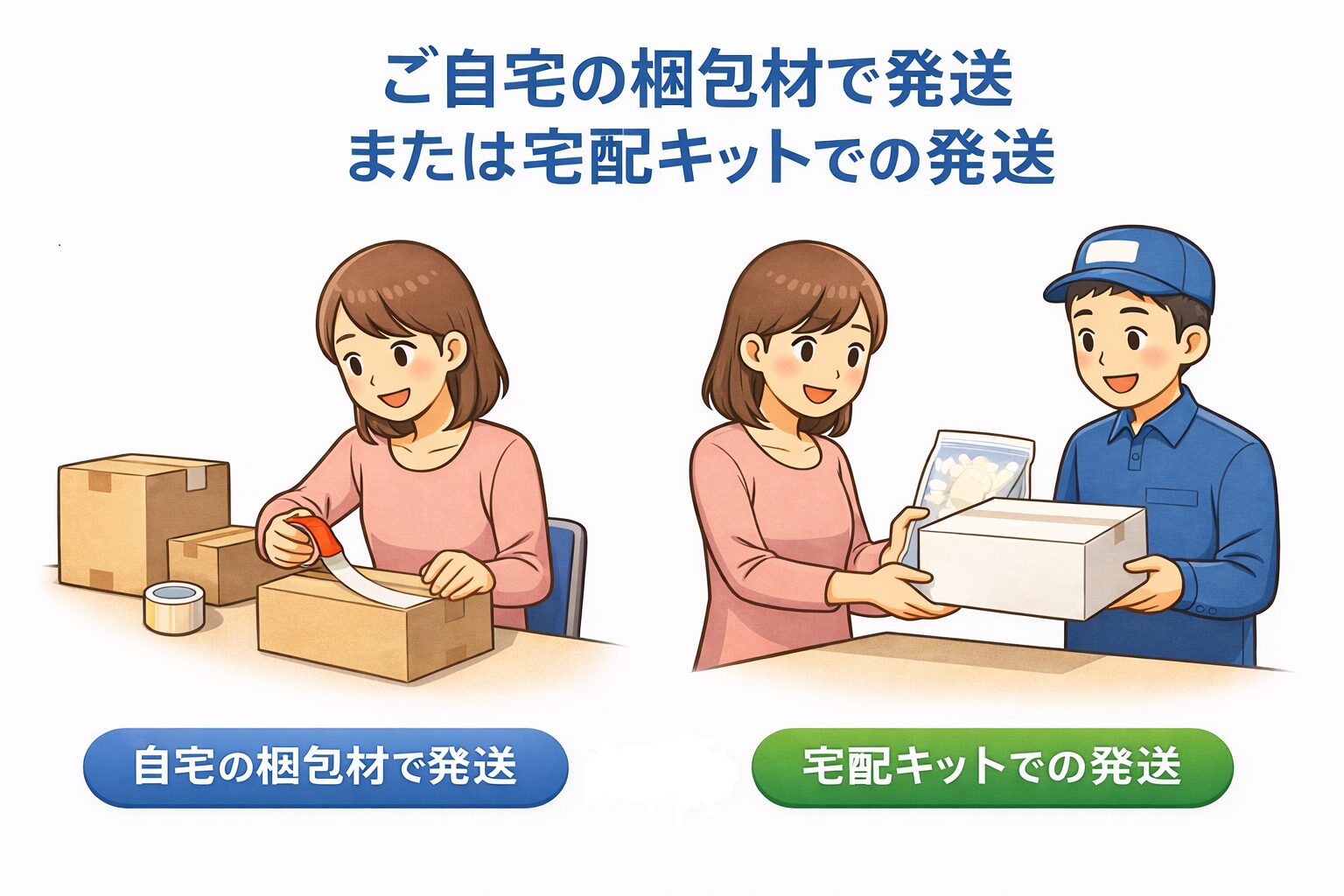 ご自宅の梱包材で発送、または宅配キットでの発送