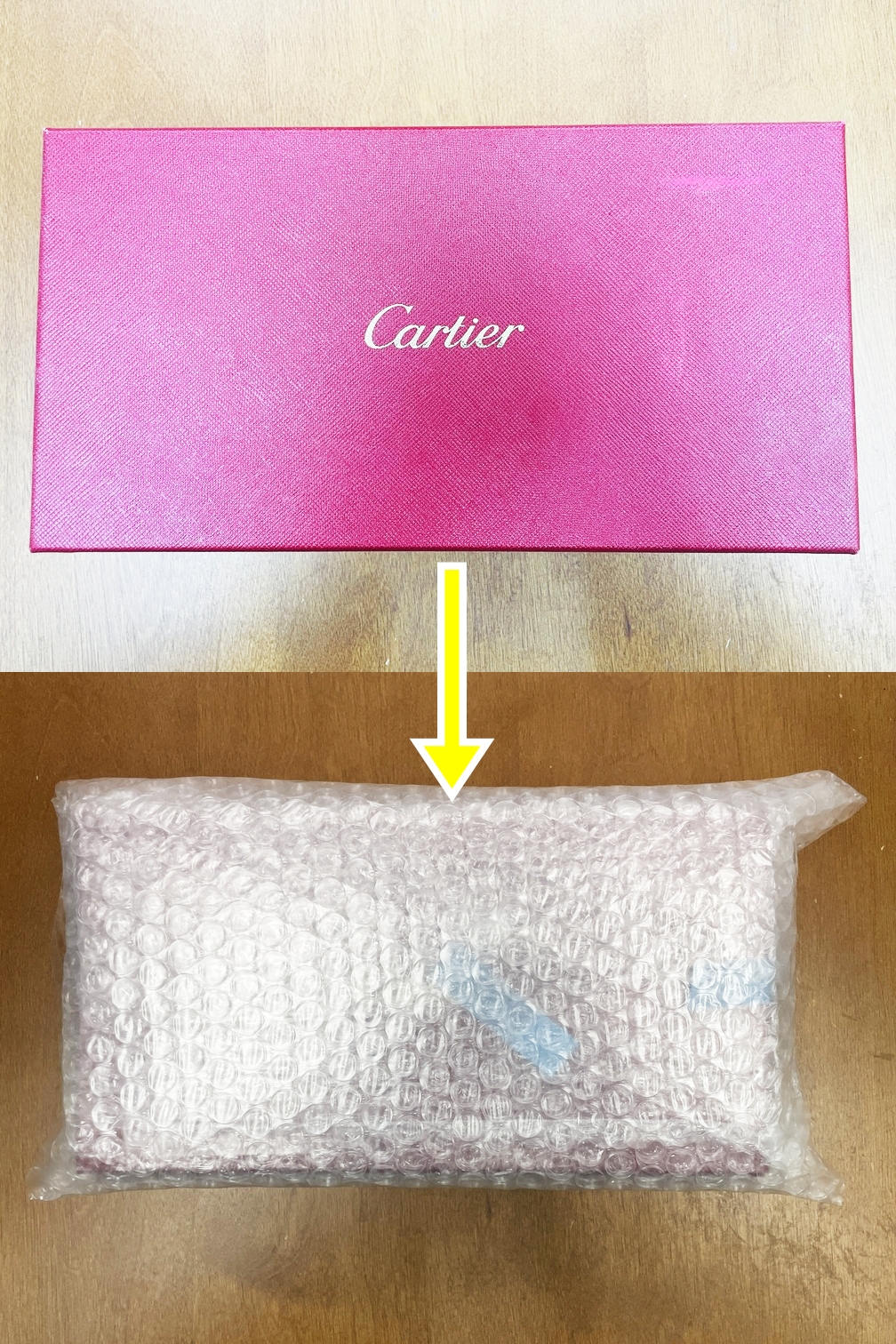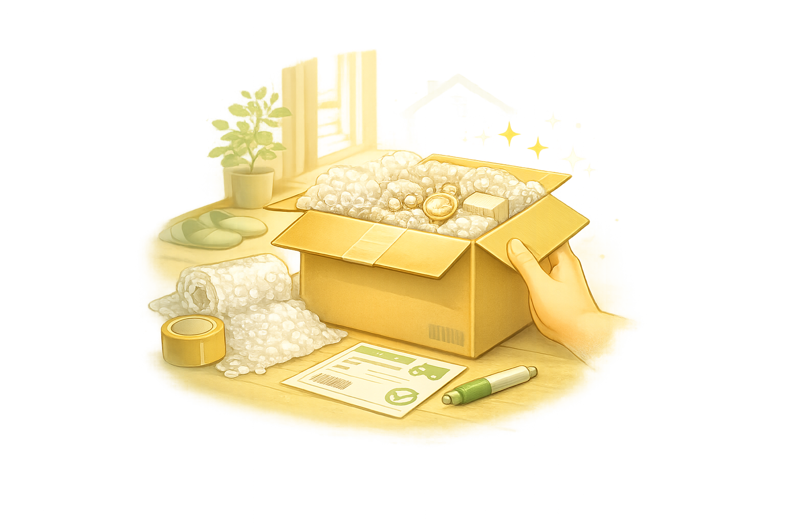 お品物が傷つかないよう、緩衝材を使用し、隙間なく丁寧に梱包してください。