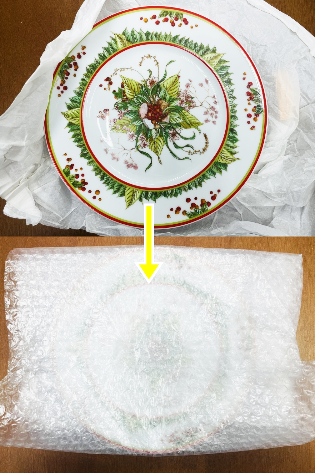 緩衝材以外にも、新聞紙やチラシを一緒にたくさん入れていただくと、破損が無くなります。